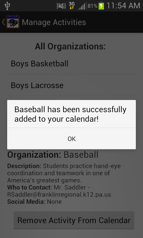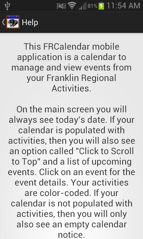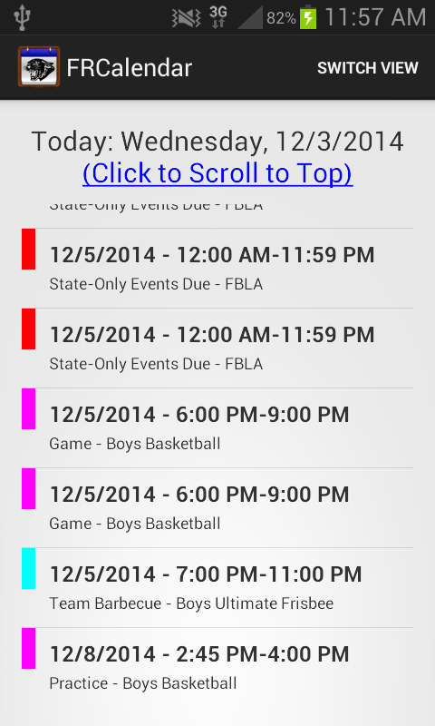 Goal: Create a mobile application annoucing activites at your school including dates, times, and contat infomration. With this app include an events list that retrieves events starting at the current day and extending into the next few months. Include a banner image scroller to this application.
