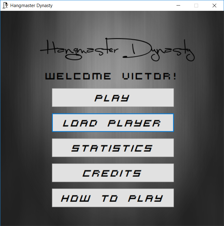To Play: download the zip, unzip, and click on the Hangmaster Dynasty shortcut. If the shortcut does not work, nagivate to "Hangmaster Dynasty/bin/Debug/Hangmaster Dyansty.exe". The zip file is 760MB because of background music files, so it will take a few minutes to download.